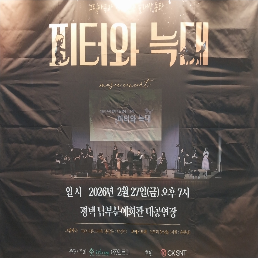 2026년 2월 27일(금) 오후 7시 평택 남부문예회관 대공연장에서 피터와 늑대 그림자 연극을 관람하고 왔습니다.